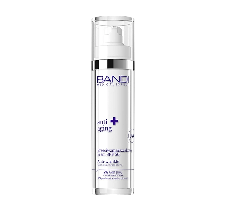 Крем для обличчя від зморшок BANDI MEDICAL Anti Aging ідеально підходить для догляду за шкірою обличчя, шиї та декольте. Фільтр SPF 50, що міститься у формулі, гарантує високий захист від шкідливого впливу сонячних променів. Зменшує зморшки, що виникають внаслідок сухості, заспокоює подразнення та зміцнює природний захисний бар’єр шкіри. Крем забезпечує глибоке зволоження шкіри, залишаючи її надзвичайно м'якою на дотик протягом багатьох годин.