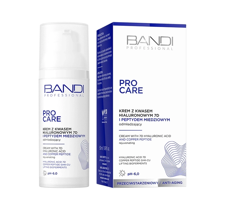 Формула крему Bandi Pro Care збагачена медним пептидом GHK-Cu, який стимулює оновлення клітин, покращує щільність шкіри та зменшує видимість зморшок. Додатково крем містить біофермент з ліфтинг-ефектом, який створює тонку підтягуючу плівку на поверхні шкіри, покращуючи її розгладження та загальний вигляд. Поєднання активних компонентів забезпечує як миттєвий, так і довгостроковий ефект.