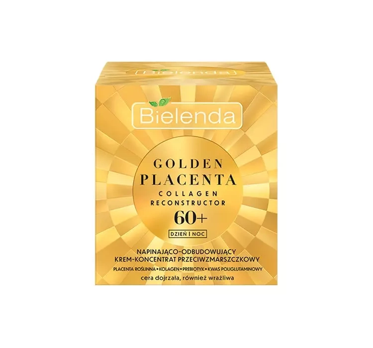 Відновлюючий крем-концентрат проти зморшок для обличчя 70+ на день і ніч із серії Bielenda Golden Placenta - це фантастичний косметичний засіб для щоденного догляду. Особливо він подіє на шкіру, яка помітно втратила еластичність і пружність, через що обличчя виглядає втомленим. Ви можете використовувати його на шиї та декольте, щоб також омолодити ці частини. У своїй унікальній формулі продукт містить рослинну плаценту, отриману природним шляхом із сої. Він легко проникає в глибокі шари епідермісу, де живить і відновлює клітини, стимулюючи їх до бажаного процесу відновлення шкіри.