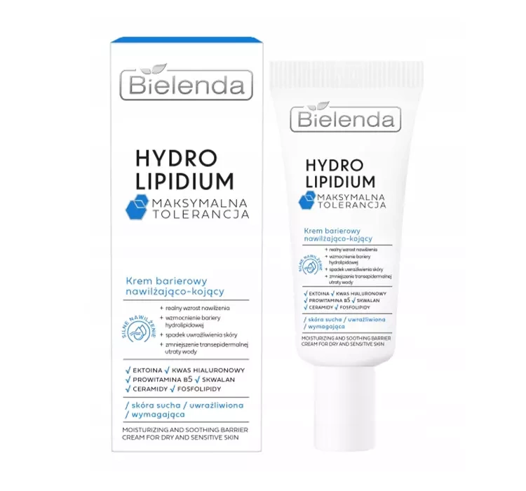 У складі зволожуючого і заспокійливого крему для зміцнення бар'єру шкіри із серії Bielenda Hydro Lipidum Ви знайдете активні інгредієнти, які надають косметиці чудовий ефект догляду - сквалан, цераміди, гіалуронова кислота, ектоїн, провітамін B5 і фосфоліпіди.