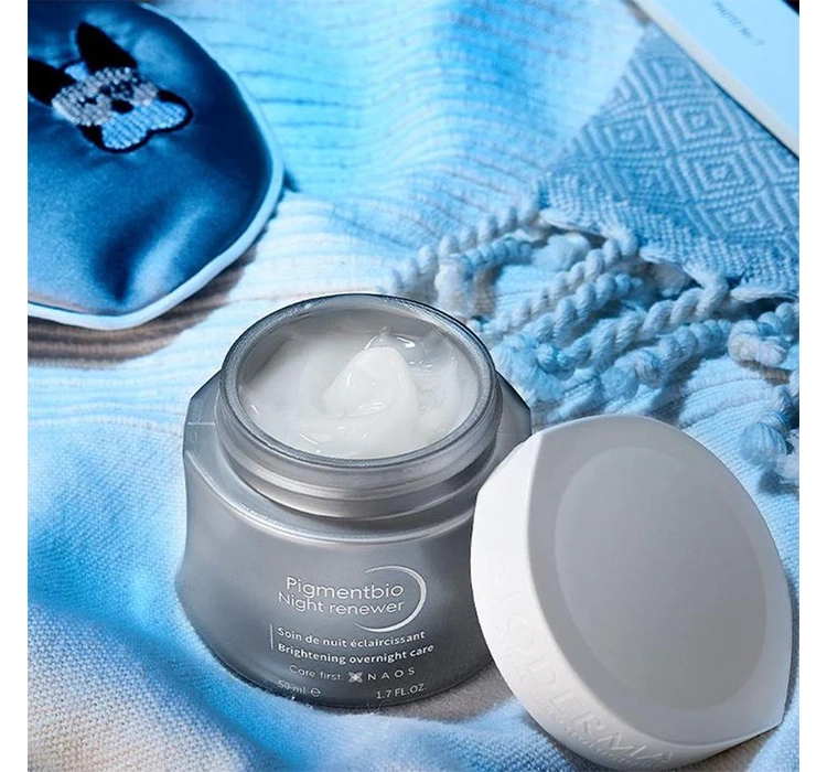 Нічний крем Bioderma Pigmentbio Night Renewer створений спеціально для шкіри з проблемами гіперпігментації. Його дія полягає в освітленні пігментних плям і регуляції вироблення меланіну, який сприяє процесам оновлення клітин. Крім того, він підтримує вироблення колагену, який допомагає розгладити дрібні зморшки, надаючи шкірі молодший вигляд. Нічний крем, що зменшує знебарвлення також працює як зволожуюча маска, інтенсивно живлячи шкіру всю ніч.