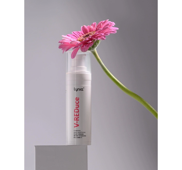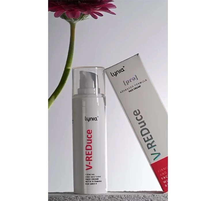У колекцію Lynia [PRO] входить, серед іншого, інноваційний крем для обличчя V-REDuce, який забезпечує комплексний догляд за шкірою. Завдяки унікальній комбінації вітаміну B12 і F, цей продукт призначений для зменшення почервоніння та зміцнення шкіри.