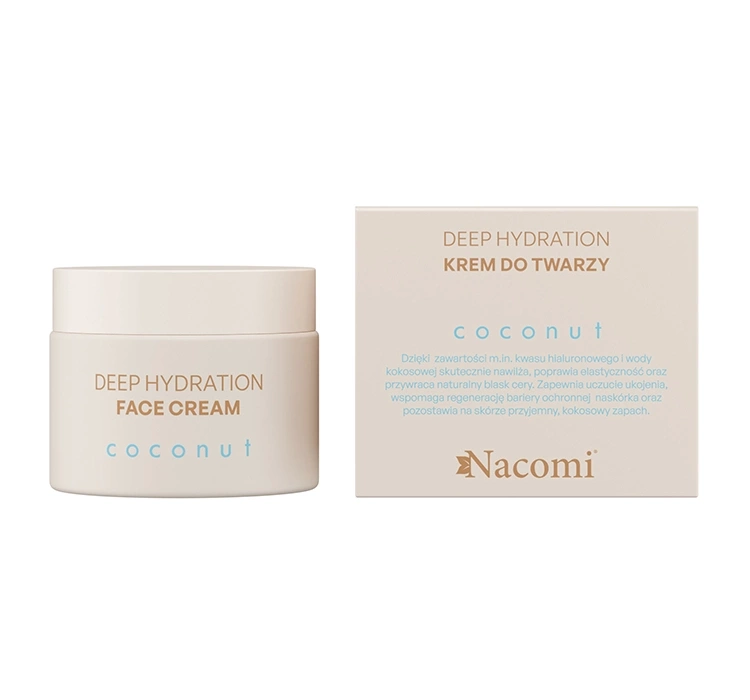 Nacomi Coconut — серія косметики, створена спеціально для молодої сухої шкіри, яка потребує миттєвого зволоження. Надзвичайно ефективні рецептури базуються на ідеальному поєднанні кокосової води та гіалуронової кислоти, які разом покращують її зовнішній вигляд та стан. Пропозиція включає чотири продукти для обличчя - крем, сироватку, очищаючий гель і кокосову воду, тому ви можете забезпечити своїй шкірі багатовимірний догляд або вибрати той, який відповідає вашим індивідуальним потребам і вподобанням.