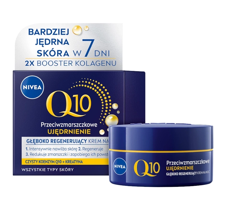 Nivea Q10 Plus проти зморщок, зволожувальний нічний крем має надзвичайно легку формулу, пристосовану до потреб кожної шкіри.