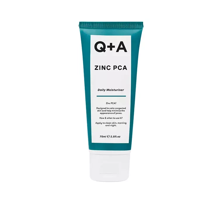 Крем для обличчя з цинком PCA Q+A Zinc PCA Daily Moisturiser має легку молочну текстуру, яка дуже швидко вбирається і не обтяжує шкіру. Для денного та нічного використання. Засіб створено для догляду за проблемною шкірою, з недоліками, змінами кольору або розширеними порами. Його ефективна формула містить цинк PCA, який зменшує подразнення та сприяє загоєнню запалень. Він був підкріплений ніацинамідом, екстрактом кореня сибірського женьшеню, алое вера та олією виноградних кісточок. Разом вони піклуються про вимогливу шкіру обличчя, забезпечуючи їй правильні властивості, не обтяжуючи, не забиваючи пори та не подразнюючи чутливі ділянки. Без спирту.