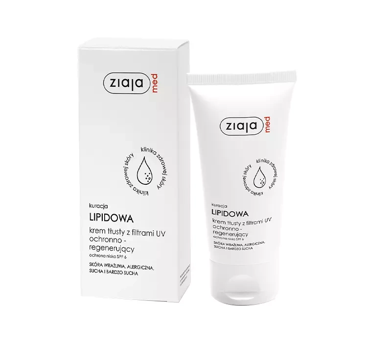 Крем Ziaja Med - Ліпідний Догляд призначений для догляду за чутливою, алергічною та дуже сухою шкірою. Він дуже делікатний для хімічного балансу епідермісу, поповнює дефіцит захисного шару шкіри та інтенсивно зволожує, заспокоюючи подразнення. Містить УФ-фільтри та забезпечує інтенсивне змащення, що робить його ідеальним для захисту від негативного впливу зовнішніх факторів.