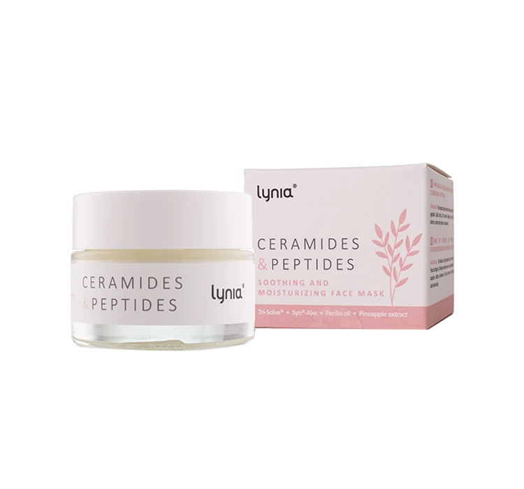 Зволожуюча та заспокійлива маска з керамідами та пептидами від Lynia - унікальний косметичний засіб для щоденного догляду за всіма типами шкіри. Завдяки сильним заспокійливим властивостям маска миттєво зменшує подразнення, почервоніння та сухість шкіри, повертаючи втрачене відчуття комфорту.