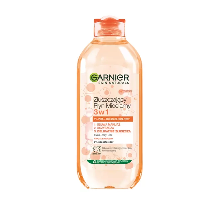 Відлущувальна міцелярна вода 3в1 Garnier - це спосіб комплексного очищення обличчя в будь-якому віці - знімає макіяж, звужує пори і стимулює швидке оновлення епідермісу. Його формула гіпоалергенна, підходить для всіх типів шкіри, включаючи чутливу. Можна використовувати для всього обличчя, а також навколо повік, губ і декольте. І жінки, і чоловіки можуть включити його в свій догляд. Завдяки вмісту міцел відлущувальна рідина Garnier не залишає на шкірі навіть сліду макіяжу чи забруднень. Частинки міцели характеризуються унікальною структурою, яка навіть притягує забруднення та значно полегшує процес їх видалення. Просто нанесіть невелику кількість рідини на ватний диск і нанесіть на шкіру, не розтираючи.