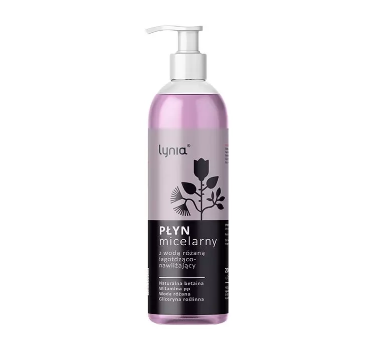 Заспокійливо-зволожуюча міцелярна рідина Lynia у своєму інноваційному складі містить дорогоцінну трояндову воду, яка чудово тонізує та зміцнює епідерміс, а також звужує кровоносні судини. Формула рідини також містить натуральний бетаїн, який зменшує відчуття липкості та відновлює належний рН шкіри, а також вітамін РР, який покращує її еластичність і демонструє антивіковий ефект.