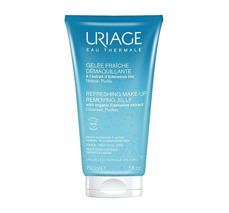 Гель для демакіяжу Uriage з екстрактом едельвейса альпійського збагачений Термальною водою Uriage, що надає йому зволожуючі та заспокійливі властивості. Органічний екстракт едельвейса альпійського має регенеруючу дію та забезпечує комфорт, зменшуючи відчуття стягнутості шкіри після очищення. Освіжаючий гель для демакіяжу Uriage Eau Thermale не лише ретельно очищує, а й дбає про делікатний гідроліпідний баланс шкіри, залишаючи її м’якою, гладенькою та сяючою.