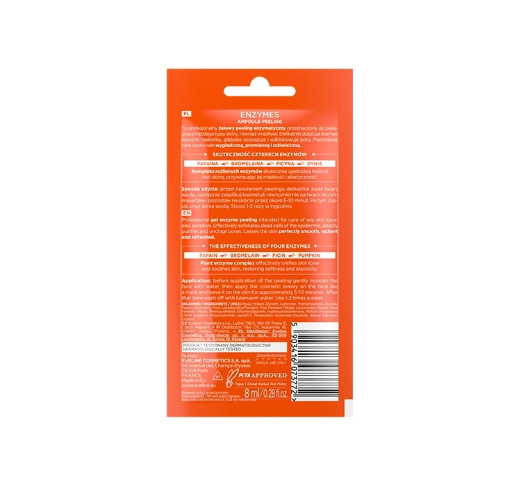 Формула заснована на комплексі рослинних ферментів – папаїну з папайї, бромелаїну з ананаса, фіцину з інжиру та ферментів із екстракту гарбуза. Ці активні компоненти делікатно розчиняють ороговілі клітини, сприяючи природному оновленню шкіри без подразнення. Вони стимулюють регенерацію, покращують еластичність і вирівнюють колір обличчя. Легка гелева текстура забезпечує комфортне нанесення, а веганська формула підкреслює сучасний, екологічний підхід до догляду.
