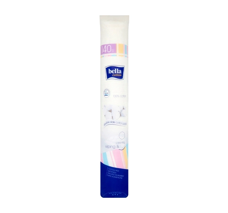 Косметичні диски з серії Bella Cotton виготовлені з бавовни і мають м'який матеріал, який не викликає подразнення шкіри. Вони двосторонні, що робить їх зручними у використанні та більш ефективними. Бавовняні косметичні диски Bella Cotton мають закриті краї, що запобігає їх розколюванню та залишенню волокон на шкірі. Вони не деформуються і надзвичайно стійкі.