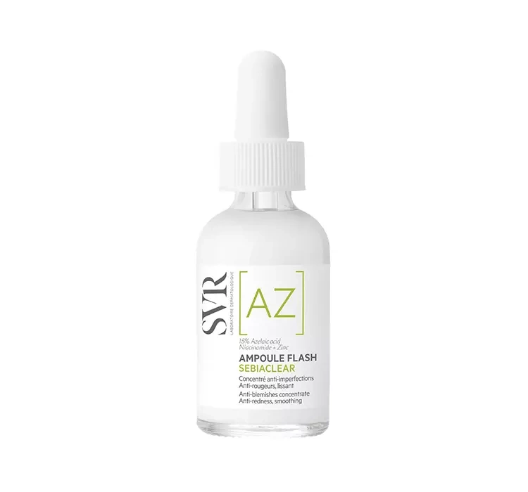 Формули серії SEBIACLEAR містять два дуже потужні дерматологічні активні інгредієнти, які зменшують недоліки шкіри. Їх концентрація в окремих продуктах залежить від призначення препарату, щоб забезпечити найбільш ефективну дію для конкретного типу шкіри. У SVR Sebiaclear [AZ] Ampoule Flash концентрованій сироватці для корекції недоліків і почервонінь Ви знайдете: