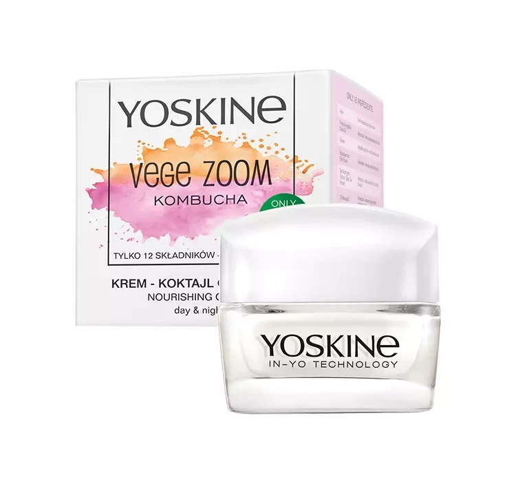 Денний і нічний крем для обличчя Yoskine Vege Zoom Kombucha - це справжня порція живлення для шкіри. Ефективно зменшує плями та вирівнює колір обличчя. Крім того, крем захищає шкіру від сухості і підтримує процеси регенерації. Після його використання шкіра виглядає відпочилою.