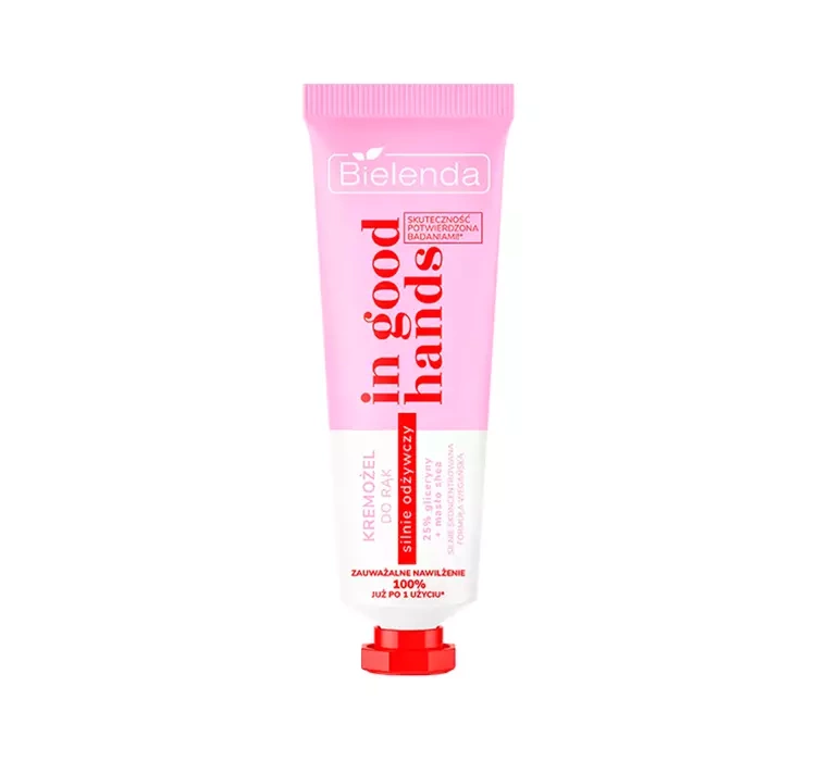 Bielenda In Good Hands – це унікальна серія крем-гелів, які забезпечують щоденний комплексний догляд за ніжною шкірою рук. Насичена формула крему розроблена з максимальною ретельністю, вона ідеально впливає на зовнішній вигляд і стан шкіри. Пропозиція включає два надзвичайно ефективні креми для рук: сильно живильний і відновлюючий, тому Ви можете обрати той, який найкраще відповідає Вашим індивідуальним потребам і вподобанням.