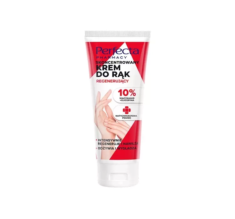 Концентрований крем для рук від Perfecta Pharmacy у своїй унікальній формулі містить численні живильні речовини, що робить його ідеальним для вимогливої шкіри рук. 10% ніацинамід, комплекс вітаміну B3 і гліцерину глибоко зволожують і запобігають надмірному пересиханню шкіри, а дорогоцінна касторова олія помітно пом’якшує і живить епідерміс. Крім того, засіб стимулює регенерацію шкіри і робить її приємно гладкою і м’якою на дотик. Крем ідеально доглядає за сухою та потрісканою шкірою, повертаючи їй комфорт та здоровий вигляд.