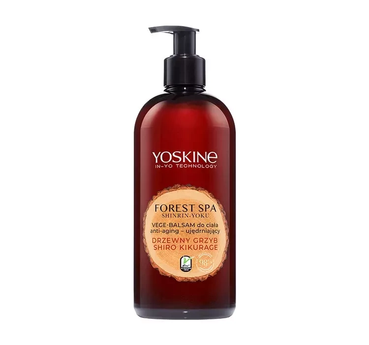 Зміцнювальний бальзам із серії Yoskine Forest Spa – ефективний косметичний засіб на основі Shinrin-Yoku, або японської лісової терапії . Його багата формула містить японський гриб Shiro Kikurage , який має сильну зволожуючу дію і олії сої та горіха макадамії , які помітно розгладжують шкіру, підтягують та омолоджують її. Кремова текстура бальзаму легко розподіляється по тілу і швидко вбирається. Додатковою перевагою є його прекрасний аромат східного лісу, який огорне Ваше тіло і зробить процедуру догляду надзвичайно приємним і розслабляючим ритуалом. Зручне упакування з дозатором дозволяє швидко, легко та гігієнічно наносити продукт.