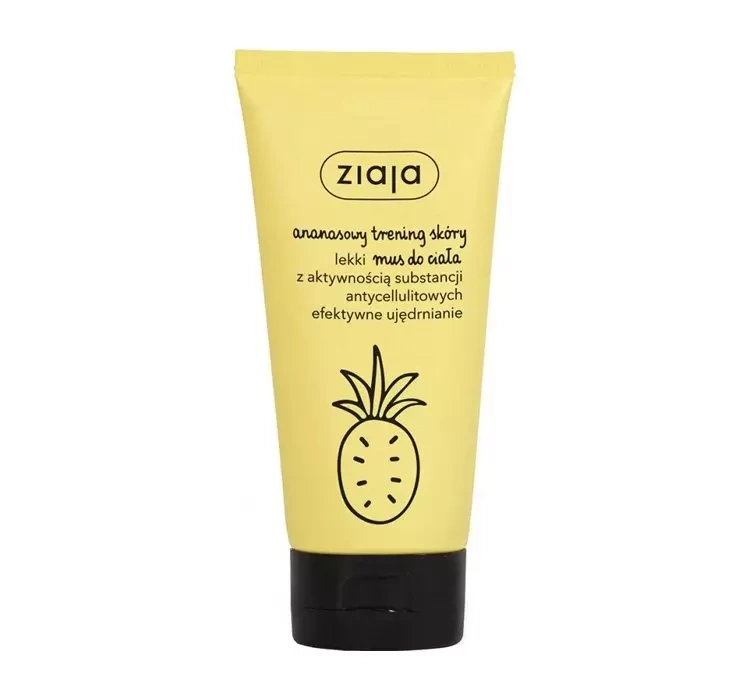 Косметика для догляду за тілом Ziaja з серії Pineapple skin training згладжує, очищає і надає шкірі відчуття свіжості. Екстракт ананаса та кофеїн, що містяться у складі мусу, забезпечують шкірі винятковий релакс. Ананас покращує гладкість, еластичність і пружність шкіри при целюліті. Кофеїн стимулює шкіру для поліпшення її міцності, а також згладжує структуру епідермісу. Засіб ефективно додає пружності і бореться з целюлітом.