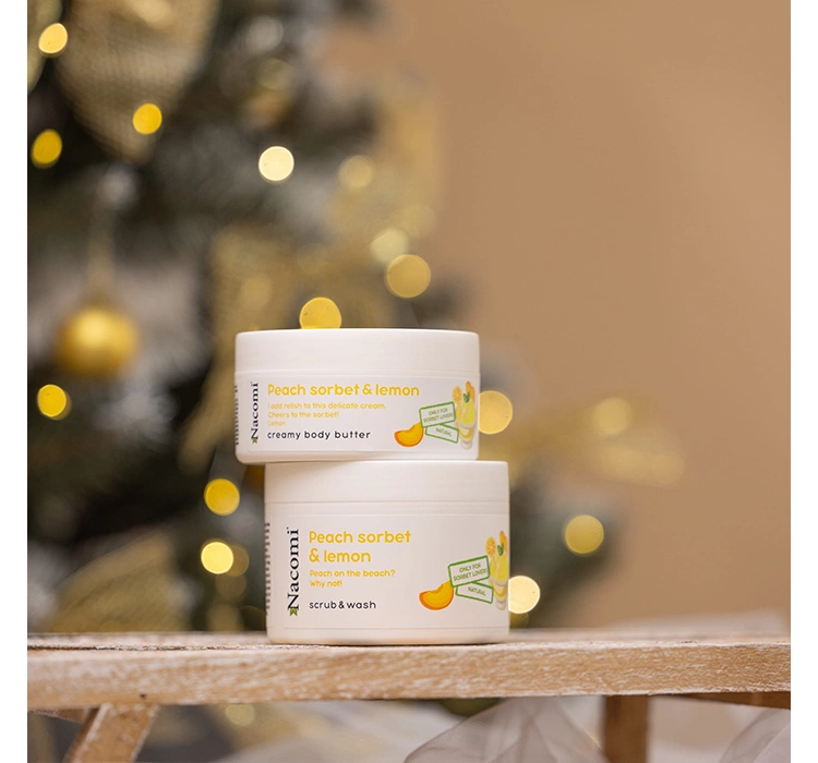 ПольщаНабір Nacomi Peach Sorbet & Lemon містить кремове масло і скраб для тіла з незвичайним ароматом персикового сорбету з соковитим лимоном. Різдво - це час, коли кожен з нас хоче відпочити, а косметика, що входить до подарункового набору, допоможе створити чудову SPA-атмосферу, не виходячи з дому.