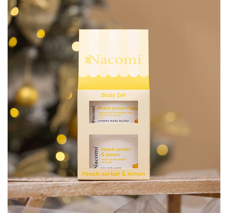 NACOMI PEACH SORBET & LEMON ПОДАРУНКОВИЙ НАБІР МАСЛО ДЛЯ ТІЛА + ПІЛІНГ ДЛЯ ТІЛА