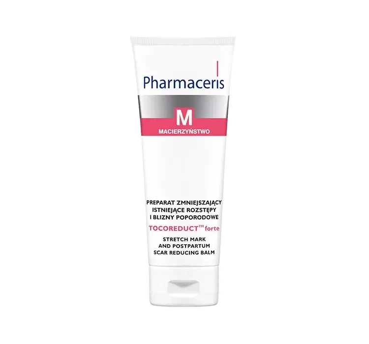 Pharmaceris M TocoreductTM Forte препарат, що зменшує наявні розтяжки та післяпологові рубці, рекомендується як жінкам з 4-го місяця вагітності, так і людям із тенденцією до значних коливань ваги. Він пом’якшує та зменшує післяпологові рубці та ті, що є наслідком зовнішніх механічних пошкоджень.