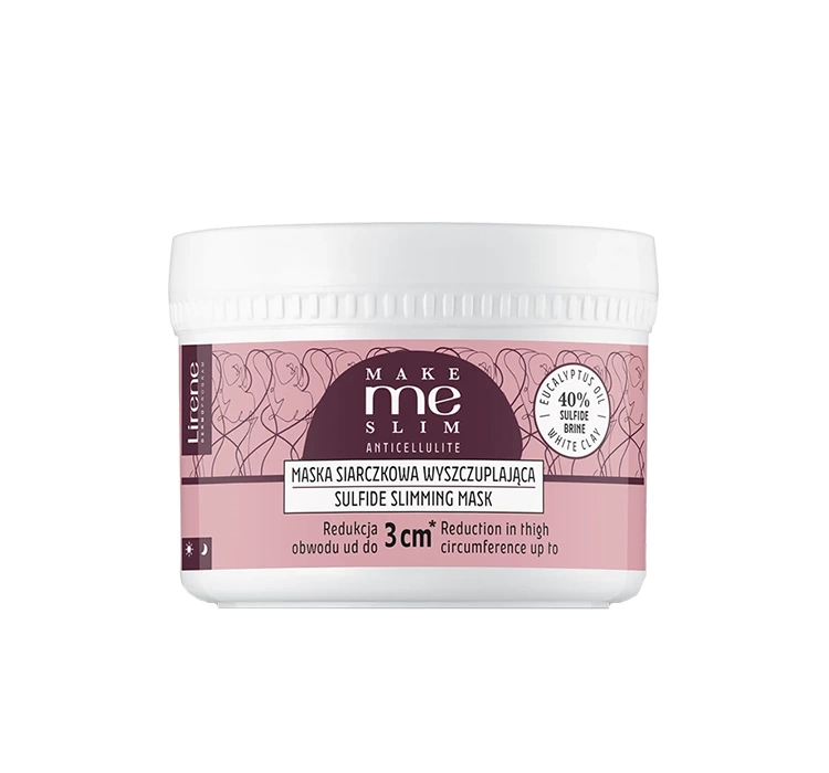 ПольщаСульфідна маска Lirene Make Me Slim допоможе Вам у боротьбі з целюлітом! Косметичний засіб ефективно розгладжує та підтягує шкіру. Маска містить дорогоцінні активні інгредієнти, які разом відповідають за фантастичний ефект продукту. Формула косметичного засобу містить сульфідний розсіл, евталіптову олію та білу глину. Ця комбінація речовин гарантує пружну та гладеньку шкіру кожного дня.