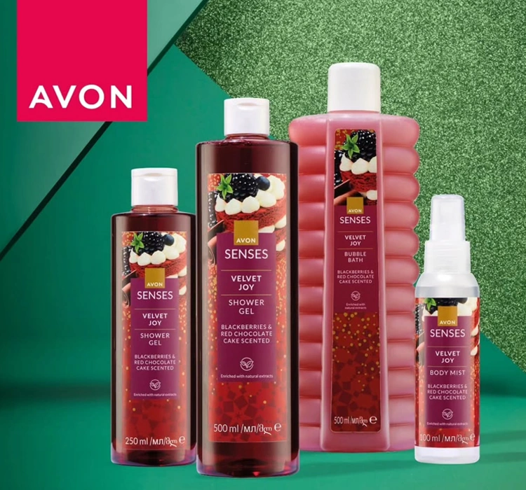 Додайте до кошика гель для душу Avon Senses Velvet Joy Shower Gel Blackberries & Red Chocolate Cake та насолоджуйтесь розкішним доглядом із нотами шоколадного торта (Red Velvet Cake) та соковитої ожини.