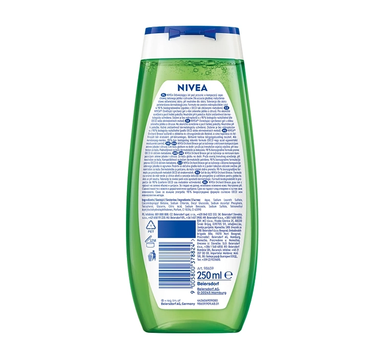 НімеччинаІнноваційна формула ніжно, але ефективно видаляє всі забруднення зі шкіри, залишаючи її свіжою, гладкою та оксамитово м’якою на дотик. Косметика має нейтральний рН, який відновлює правильний баланс і не викликає подразнення, тому засіб також можна використовувати людям з чутливою шкірою. Надзвичайно приємний, захоплюючий аромат залишається на тілі ще довго після нанесення. Крім того, формула продукту на 99% не містить мікропластику та дуже легко біологічно розкладається.