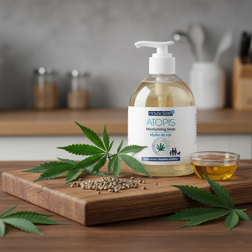 • Novaclear Atopis – це спеціалізоване мило для рук з органічною олією конопель. Воно очищає, не пошкоджуючи гідроліпідний бар'єр, заспокоює подразнення та зволожує. Ідеально підходить для людей з атопічним дерматитом.