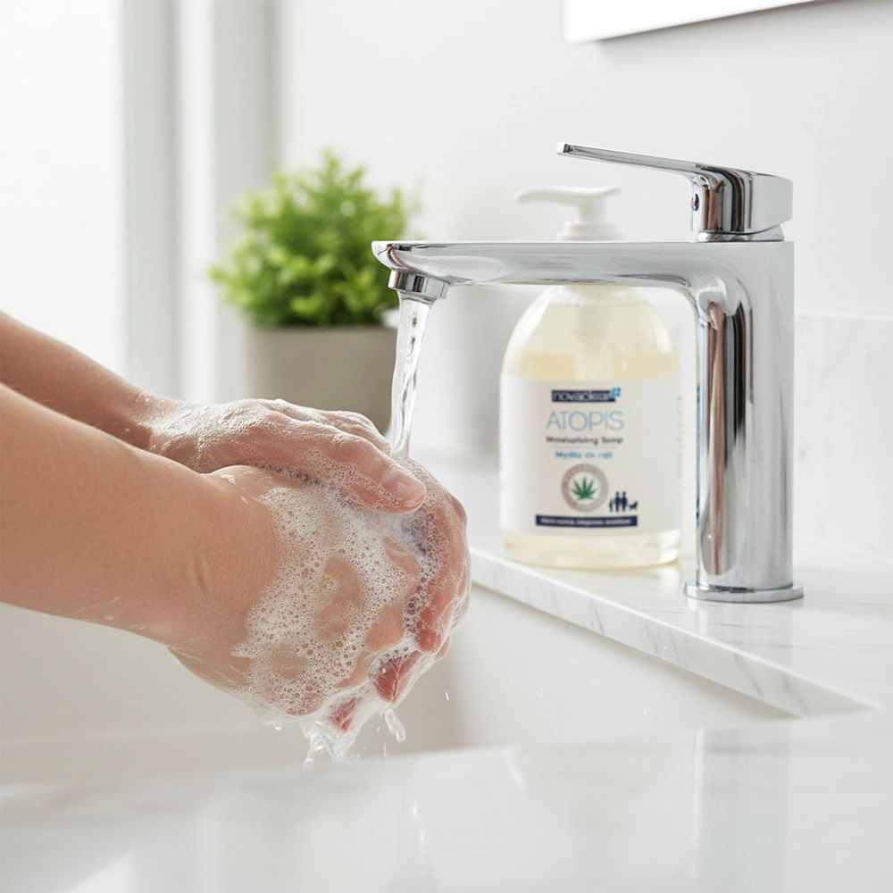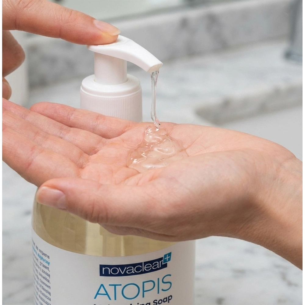 Додавання гліцерину забезпечує додаткове відчуття зволоження, завдяки чому шкіра після миття залишається м’якою та гладенькою. Мило для рук з помпою Novaclear було дерматологічно протестоване, що підтверджує його високу переносимість навіть дуже реактивною шкірою. Обираючи мило для атопічної шкіри лінії Atopis, ви інвестуєте в продукт, який не лише очищує, а й виконує терапевтичну функцію — регенерує епідерміс і відновлює природний захисний бар’єр рук при кожному використанні.