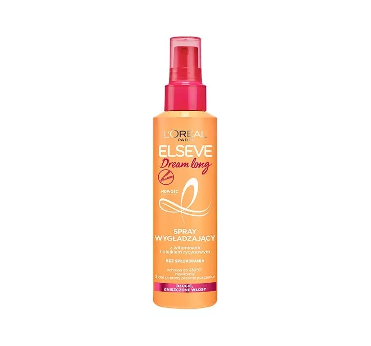 Розгладжуючий спрей L'Oreal Paris Elseve Dream Long забезпечує аж 3-денний захист від розпушення волосся і захищає його від шкідливого впливу високої температури під час укладки. Спрей чинить захисну дію аж до 230°C та забезпечує ідеальну гладкість.