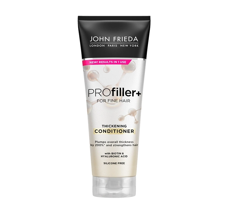 John Frieda Pro Filler+ - унікальна серія косметики, створена спеціально для тонкого волосся, яке потребує негайного об'єму. В основі рецептури лежить корисний біотин, який помітно покращує їх зовнішній вигляд і стан. Пропозиція включає шампунь, кондиціонер і спрей, тож Ви можете щодня забезпечувати своїм пасмам багатовимірний догляд або вибрати той, який відповідає Вашим індивідуальним потребам і вподобанням. Спробуйте всі косметичні засоби цієї незвичайної лінії та насолоджуйтесь красивим густим волоссям щодня.