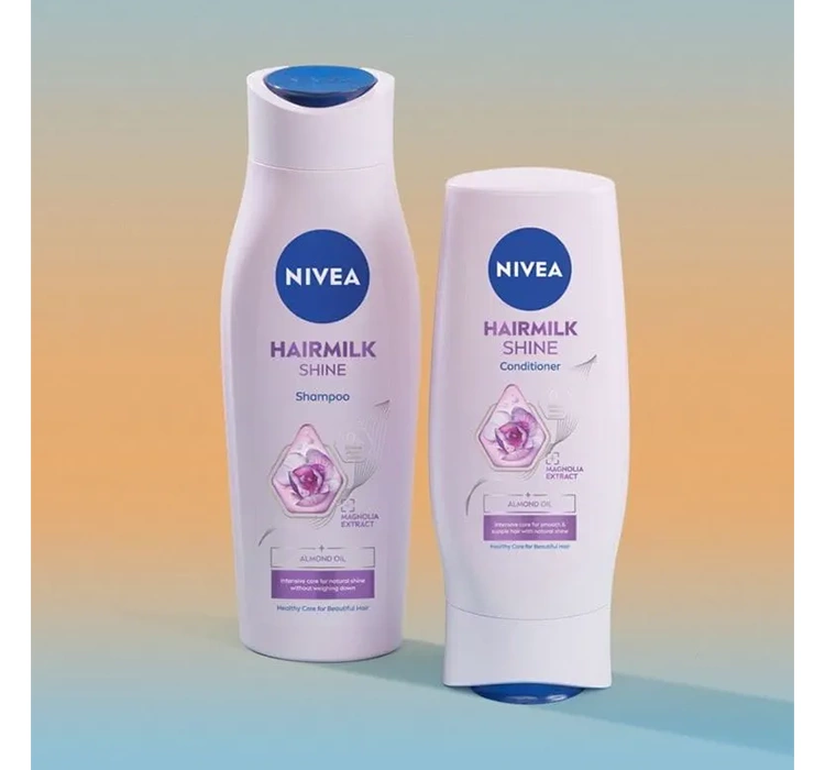 Nivea Hairmilk Natural Shine подарує блиск Вашому волоссю! Тьмяне і втомлене волосся поверне собі природний блиск і здоровий вигляд.