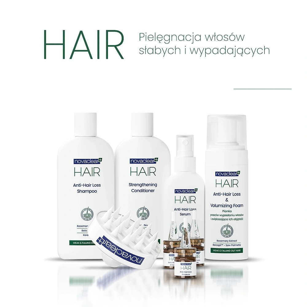 Продовжуйте подальший догляд за волоссям, використовуючи Пінку, Сироватку або Ампули з лінії Novaclear HAIR.
