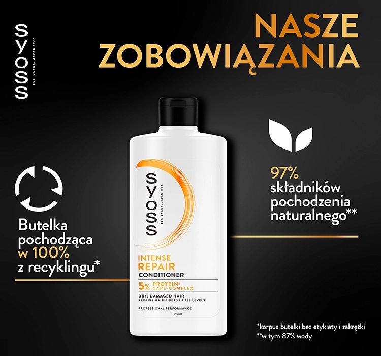 Syoss Repair - це унікальна серія косметичних засобів, спеціально розроблених для сухого та пошкодженого волосся. Засіб чудово доглядає, відновлює та регенерує пошкоджені пасма, завдяки чому вони з кожним днем виглядають красивішими та здоровішими. Багата формула глибоко проникає в структуру волосся, зміцнюючи та зменшуючи ламкість на 90%.