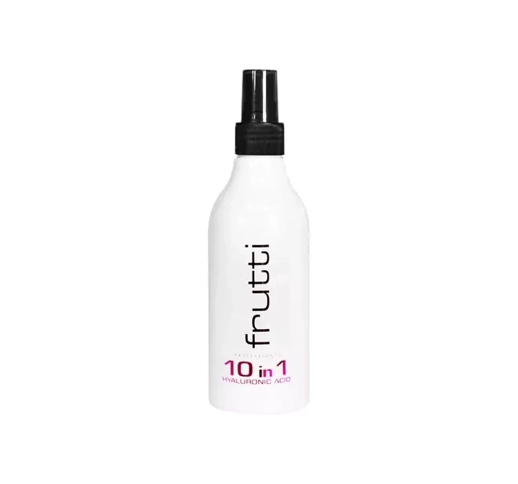 Frutti Professional 10 in 1 Hyaluronic Acid - це унікальний кондиціонер, спеціально створений для догляду за будь-яким типом волосся. Розкішна формула косметичного засобу збагачена гіалуроновою кислотою та d-пантеолом, які проникають глибоко в структуру волосся і забезпечують живлення та зволоження, завдяки яким воно виглядає феноменально кожен день. Продукт полегшує розчісування, відновлює та покращує загальний стан волосся, роблячи волосся здоровішим та красивим. Крім того, засіб не обтяжує пасма, розгладжує і запобігає електризації , що робить його більш слухняними при укладанні. Регулярне використання кондиціонера поверне волоссю оксамитову м’якість, еластичність і красивий природний блиск. Зручна упаковка з атомайзером дозволяє швидко і легко наносити.