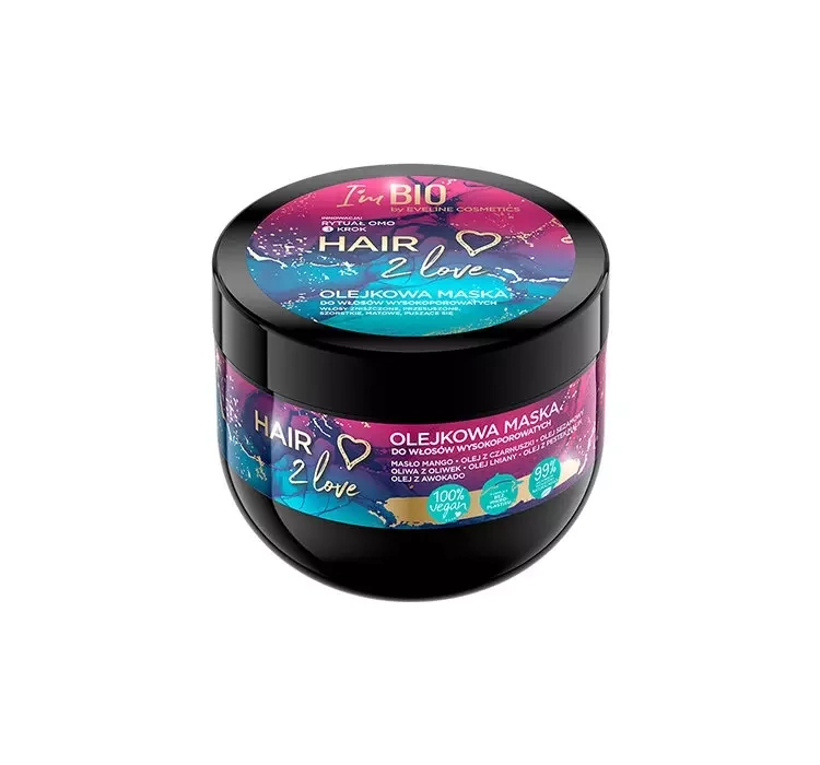 Олійна маска для волосся з високою пористістю з лінії Eveline Hair 2 Love заснована на 99% інгредієнтів натурального походження, що робить її придатною для веганів і вегетаріанців.