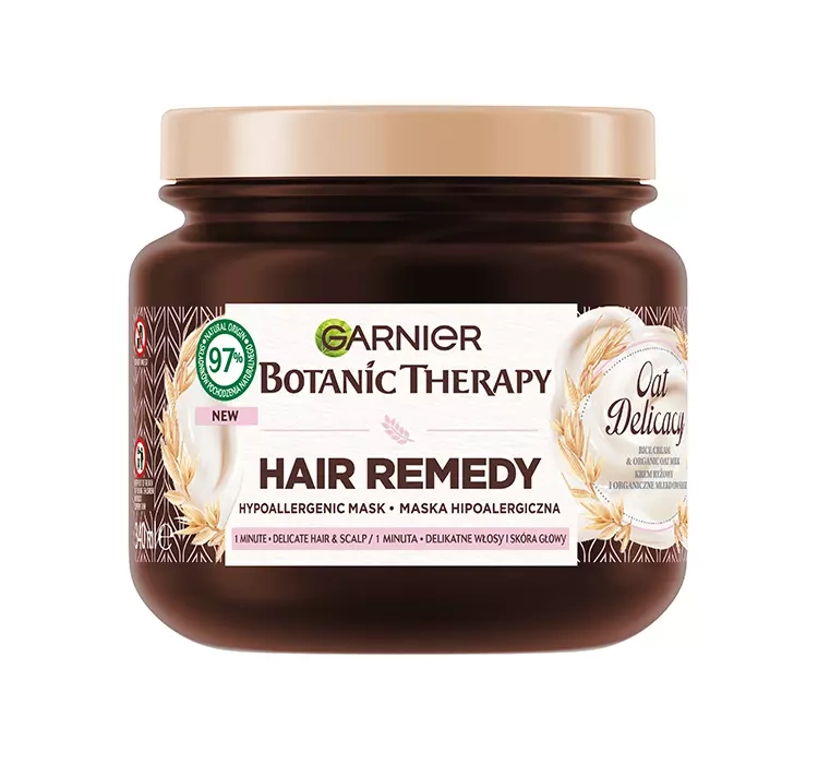 Маска для ніжного волосся і шкіри голови Garnier Botanic Therapy Hair Remedy Oat Delicacy створена на основі цінної добавки рисового крему і органічного вівсяного молока. Кремова текстура ніжно обволікає пасма, додаючи бажані живильні речовини, не обтяжуючи волосся. Формула гіпоалергенна (підтверджено сертифікатом ECARF), Ви не знайдете в ній силіконів і парабенів. Маска з вівсяним молоком Hair Remedy подарує волоссю м'якість і зволоження.