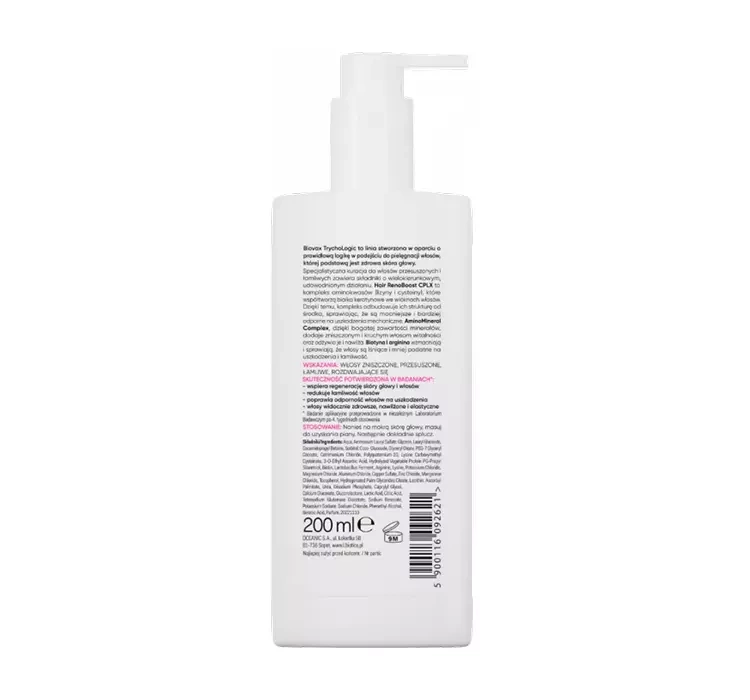 Biovax Trychologic Сухість і Ламкість - це спеціалізований догляд для ослабленого волосся зі схильністю до ламкості та посічених кінчиків. В основі інноваційної формули лежить фантастичний комплекс амінокислот Hair RenoBoost CPLX, який глибоко проникає в структуру пасм, ефективно зміцнюючи їх і відновлюючи будь-які дефекти. Дорогоцінні вітамін С і біотин інтенсивно живлять їх, збільшують об'єм і відновлюють красивий, блискучий, природний вигляд. Рецептуру також збагачено регенеруючим білковим комплексом, який зменшує проблему надмірної ламкості та робить пасма сильними та еластичними.