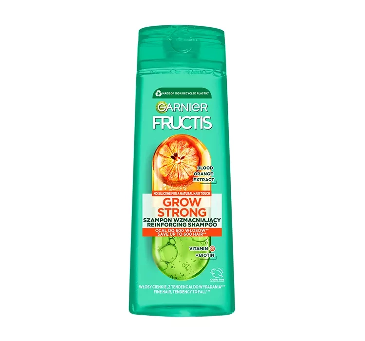 Зміцнюючий шампунь Garnier Fructis Grow Strong Orang для тонкого волосся зі схильністю до випадання - це фантастичний продукт, який дозволяє зберегти до 600 волосків на місяць, тепер у Вас точно немає сумнівів, що його варто купити. Косметика має веганську формулу, не містить інгредієнтів тваринного походження чи похідних.