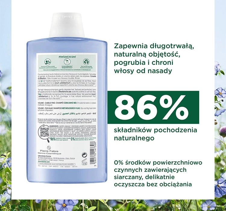 KLORANE ШАМПУНЬ З ОРГАНІЧНИМ ЛЬОНОМ ДЛЯ ОБ'ЄМУ ТОНКОГО ВОЛОССЯ 400МЛ
