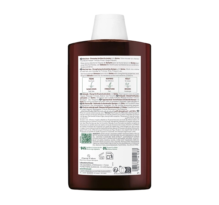 Шампунь Klorane Strengthening – це унікальний косметичний засіб, ефективність якого оцінять люди з ослабленим волоссям, схильним до випадання. Шампунь повертає волоссю життєву силу завдяки двом важливим складникам натурального походження: хініну та органічному екстракту едельвейсу. Перший є природним багатством вітаміну В, надзвичайно важливого для волосся, і кофеїну.