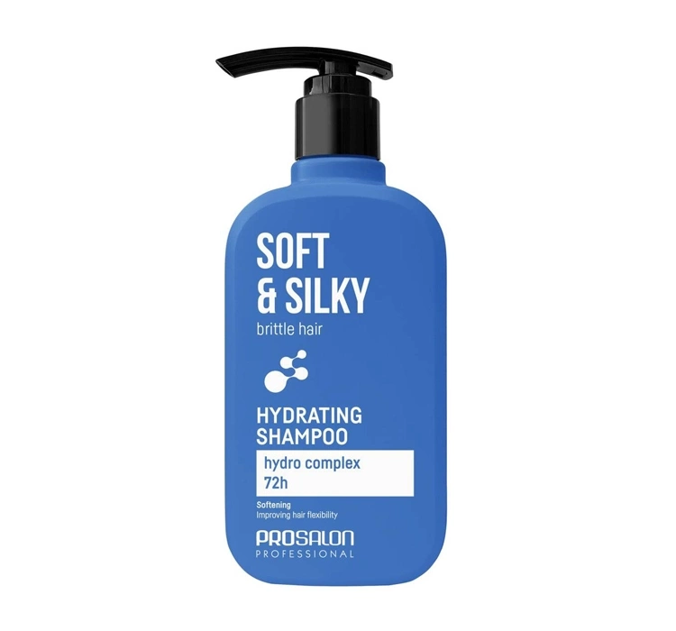 Prosalon Professional Soft & Silky Hydrating Shampoo — це зволожувальний шампунь для сухого та пошкодженого волосся, розроблений на основі інноваційної формули Hydro Complex 72h. Засіб забезпечує глибоке зволоження волосся та шкіри голови до 72 годин, надаючи пасмам м’якість, блиск і шовковисту гладкість.