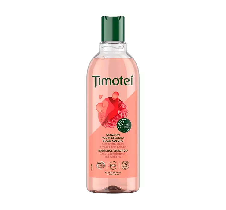 Шампунь Timotei Блискучий Колір - це чудове рішення для продовження стійкості фарби на вашому волоссі. Формула для догляду за фарбованим волоссям збагачена 100% натуральною олією з насінням червоної малини, а також органічним екстрактом білого чаю. Шампунь ефективно очищає волосся, одночасно живить пасма, щоб утримати живий колір на довший час. Шампунь Timotei Блискучий Колір містить знижену кількість сульфатів для того, щоб Ваше волосся зберегло свій блиск та чудовий стан.