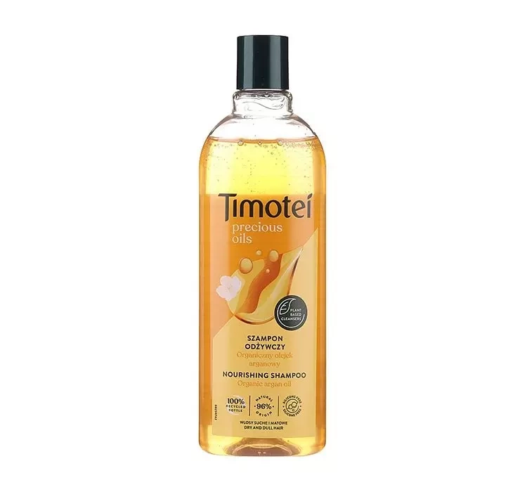 Шампунь Timotei Дорогоцінні Олійки - це ідеальне рішення для сухого та матового волосся, позбавленого натурального блиску, якому бракує зволоження. Формула продукту збагачена комплексом складників натурального походження, які мають корисний вплив на стан волосся та хочуть повернути їм здоровий вигляд. Завдяки поєднанню мигдальної олії, органічної арганової олії, екстракту квітів жасмину Шампунь Timotei Дорогоцінні Олійки регенерує волосся, робить його гладеньким та м'яким.