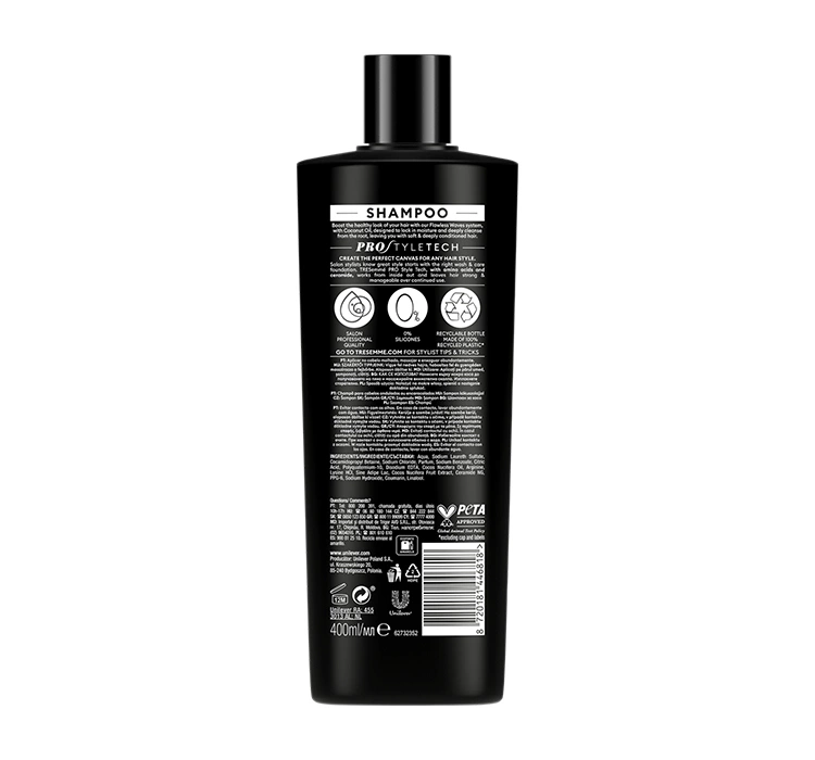 Завдяки зазвичай формулі шампуню Flawless Waves від TRESemmé він забезпечує волоссю глибоке зволоження, що є ключовим для здоров’я та зовнішнього вигляду кучерявого волосся. Регулярне використання продукту значно зменшує пухнастість, захищаючи волосся від шкідливого впливу зовнішніх факторів і залишаючи пасма гладкими та блискучими протягом усього дня.