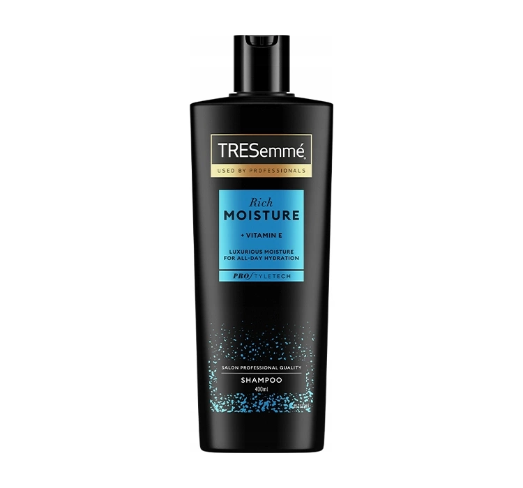 TRESemmé Rich Moisture — це лінійка косметики, призначена для догляду за сухим, тьмяним, пошкодженим і позбавленим блиску волоссям. Продукти цієї серії покращують вигляд і стан ослабленого волосся. Вони відновлюють, живлять, ревіталізують і повертають волоссю життєву силу. Завдяки засобам Rich Moisture твоє волосся стане гладким, м’яким і приємним на дотик.