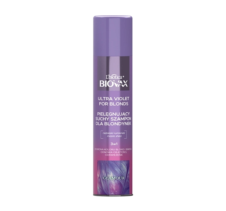 ПольщаСухий шампунь для волосся Biovax Ultra Violet For Blonds 3-in-1 - це надзвичайний косметичний засіб, який миттєво освіжить Ваше волосся, без використання води. Ідеальне поєднання олії блакитної ромашки та масла ши глибоко проникає в структуру пасм, інтенсивно зволожує, живить, розгладжує їх і захищає яскравий колір b>. Натуральний рисовий крохмаль, що міститься, поглинає надлишки шкірного сала та залишає фантастичне відчуття освіження. Крім того, він полегшує моделювання та укладку та піднімає їх від коренів, що помітно збільшує їх об'єм.