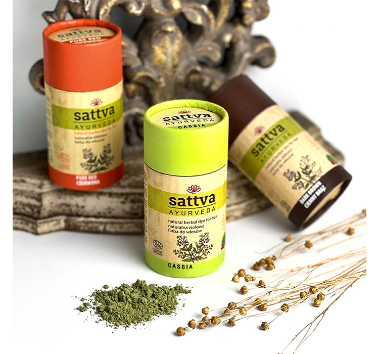 Sattva Ayurveda натуральна хна - трав’яна фарба для волосся - це поєднання фарбування та догляду за волоссям. Формула косметичного засобу базується на спеціально підібраних і надзвичайно ефективних активних інгредієнтах - аюрведичних травах, які живлять волосся і надають йому дивовижний блиск. Це чудова і, безумовно, екологічна альтернатива традиційним фарбам для волосся.