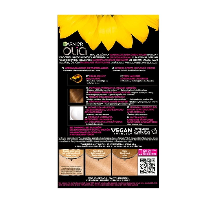 Garnier Olia - це повна палітра стійких фарб для волосся. Унікальна формула фарб містить до 60 відсотків натуральних квіткових олійок, які сприяють проникненню кольорів і гарантують насичений, яскравий відтінок.